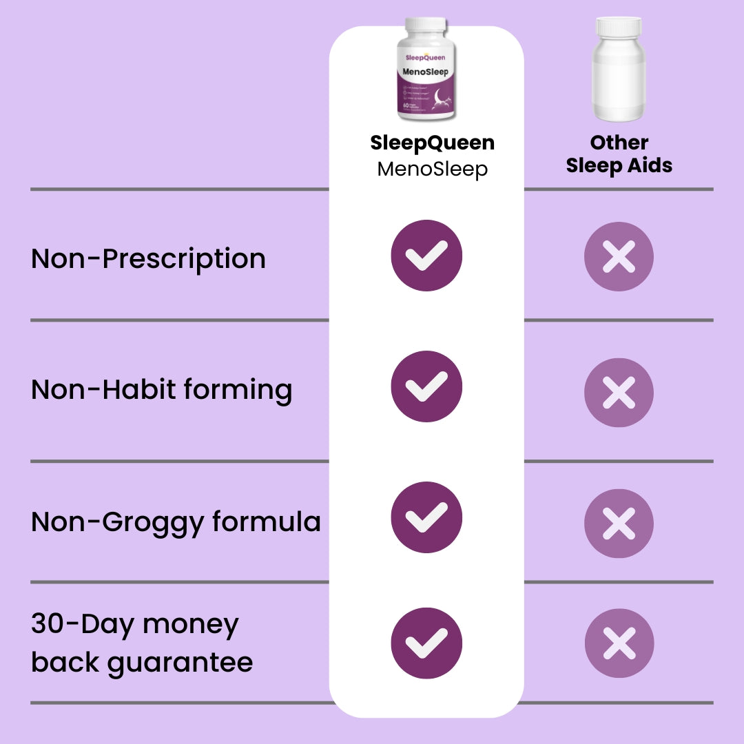 Most sleep aids are made for everyone. MenoSleep is made specifically for women in midlife. Our natural formula supports the unique sleep challenges caused by menopause. Helping you fall asleep faster, stay asleep longer, and wake up feeling refreshed.*